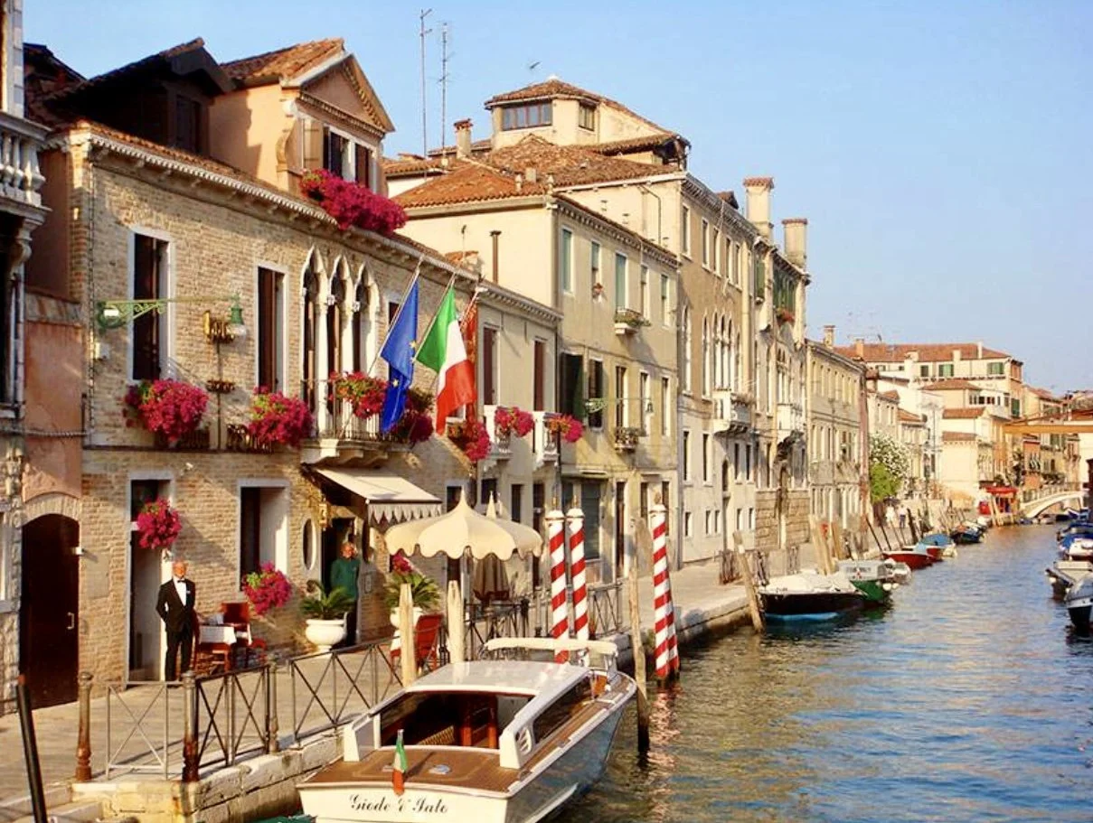 Venice is one of the most captivating cities in the world, and with Hub & Spoke Tours, you experience it in a way that feels both iconic and refreshingly local. Our home base is a beautifully restored palazzo in the heart of Cannaregio, one of Venice’s most atmospheric districts. The hotel’s warm blend of classic Venetian details and Moorish-inspired décor—reflecting the city’s historic ties to the silk and spice trade—creates a memorable sense of place. Arched accents, textured fabrics, and tall windows overlooking quiet canals make it feel like you’re living inside Venice’s history rather than just visiting it. Step outside and you’re surrounded by neighborhood cafés, charming bridges, and the gentle rhythm of daily life.
